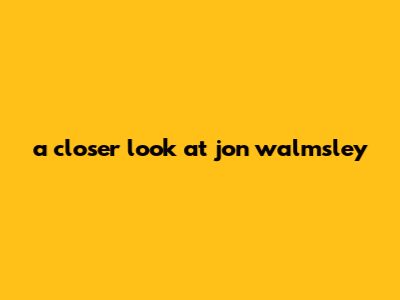 A Closer Look At Jon Walmsley