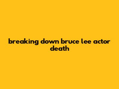 Breaking Down Bruce Lee Actor Death