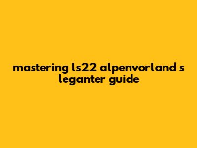 Mastering LS22: Alpenvorland's Leganter Guide