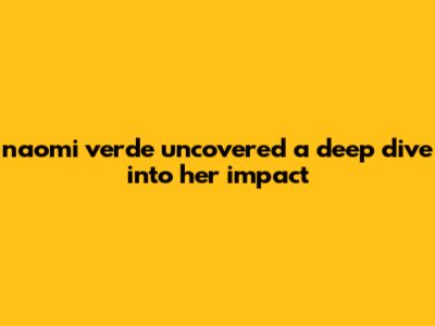 Naomi Verde Uncovered: A Deep Dive Into Her Impact